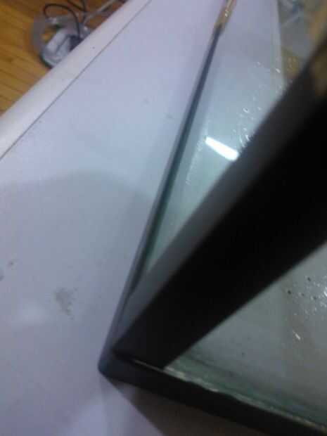 Cortar el ángulo de aluminio sólo en uno de sus lados formando una V para doblar el ángulo de la vuelta de la esquina y pegarlo con pegamento de silicona más por lo que las terminaciones del ángulo coincida con en el centro de la parte posterior. Este ángulo no permitirá que la presión del agua separar los vidrios. Algunos sólo ponen el ángulo en el borde superior e inferior pero prefiero cubrir todos los bordes porque creo que tiene una mejor apariencia que cubre la silicona para que sólo pueda ver el ángulo y no de la silicona. A continuación, usted puede llenar su tanque por último con agua y probar si tiene alguna fuga. Por suerte mía no tenía.