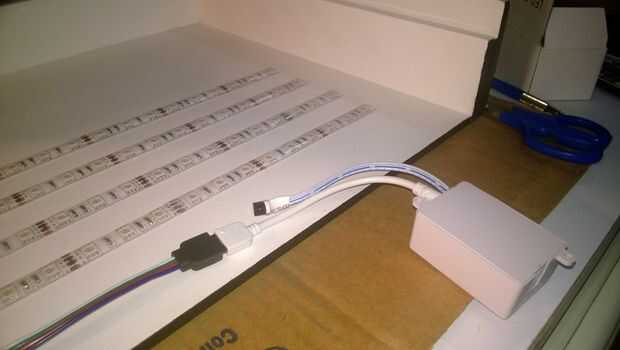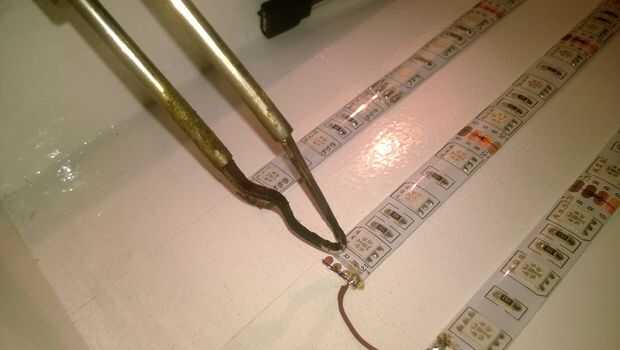 La tira de led se puede cortar cada 3 LED por lo que dividí el número de LEDs en las secciones que encajan en la cubierta. Luego soldamos los terminales y luego aislarlos con más silicona.