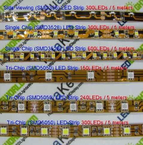 - Repita con las otras tiras, manteniéndolos todo paralelas y rectas, que alternan el tipo 5050 y 3528 tipo.