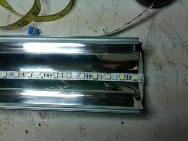Para los LEDs fui con 3 tiras de tamaño de 5050 tira de LED y 2 tiras de tira del LED 3528. El 5050's tiene 3 LEDs blancos en cada uno, y el 3528 son solo LEDs. Tenía la esperanza de los diferentes tipos de mezcla incluso la distribución ligera un poco, pero creo que no es necesario, que habría utilizado todos tipo 5050 si tuviera que elegir.