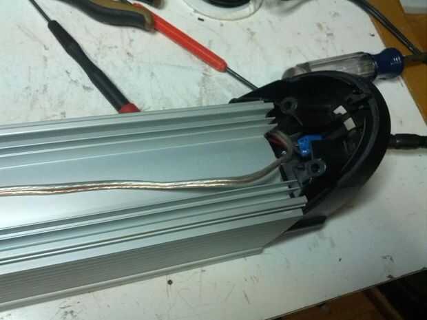 - Ejecute el cable de calibre pesado bajo el reflector (fuera del camino) a través de al otro extremo y cortar.