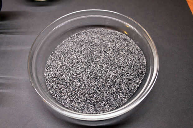 He usado arena negra natural (no artificial de color) en una tienda de acuario (ver imagen). No la solución más barata, pero todas naturales y no aerosol pintan como alternativas baratas. Usted debe preguntarse si dice "No enjuague en agua caliente" en la etiqueta.