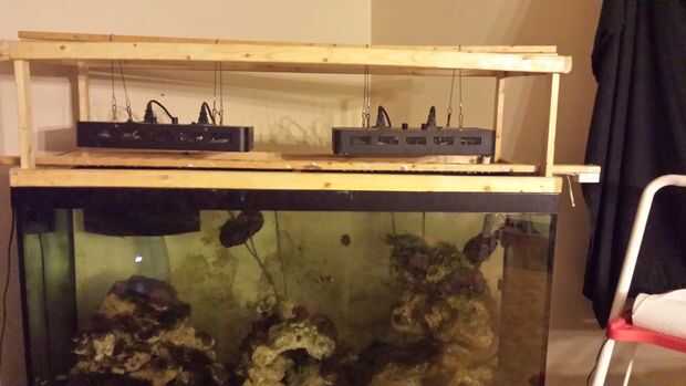 Primero quiere asegurarse de que su madera de 1 x 2 ajusta la parte superior de su acuario o su capota con seguridad. También quiere asegurarse de que tener un lugar seguro para su alimentación. Mi madera es 4 1/2 pies, así que tengo que cuelga sobre el lado del tanque con aproximadamente 4" de separación de la fuente de alimentación, también cubrí la fuente de alimentación con celofán para proteger de agua que puede pasar a splash fuera del tanque. En calefacción no ha sido un problema todavía, pero es posible.