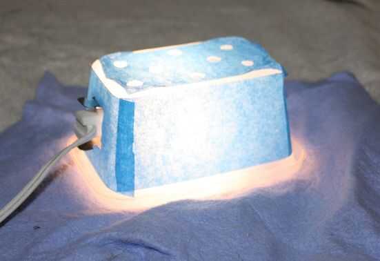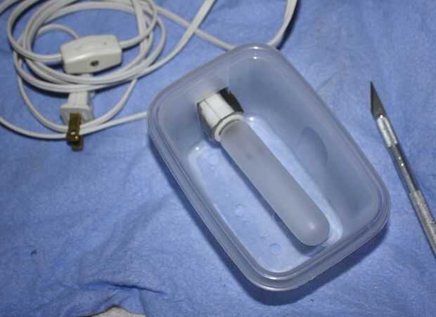 Si es necesario, cubra el exterior del recipiente con cinta de pintor azul. Eso bulbo era demasiado darn brillante para mirar a través del contenedor de plástico transparente. Si usted cubre los orificios de ventilación en la parte superior, abrirlos otra vez con su cuchillo de la manía.