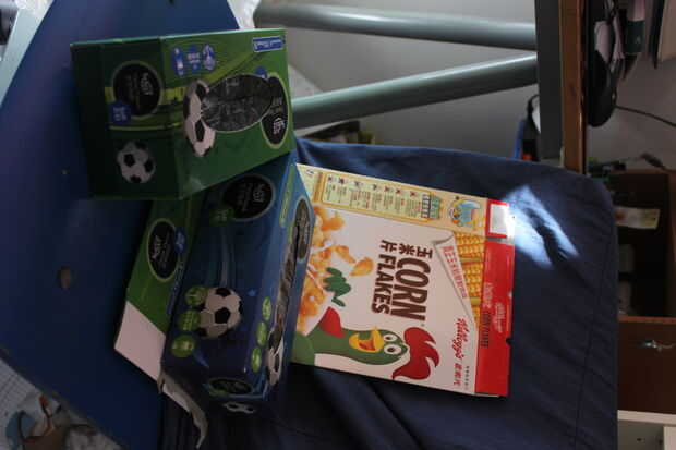 - un montón de cajas de papel reciclado (cajas de cereales o tejido)