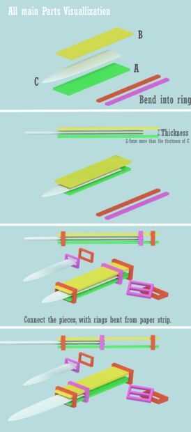 - Cortar dos capas de papel en la forma de la hoja, usar palillo de bambú dentro de reinforcement(optional)
