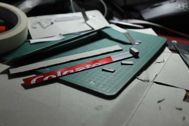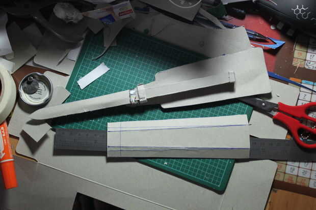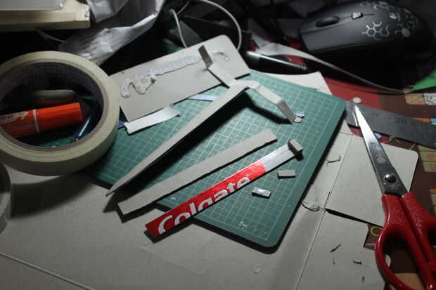 - Corte el tablero base y el comienzo de ella... (yo uso tres capas de papel para quedarse tieso)