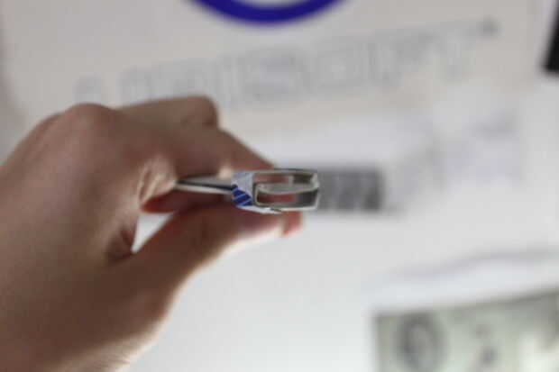 - Ajuste el 2 deslizante pista en los 2 anillos en la hoja... (!! sin pegamento!)