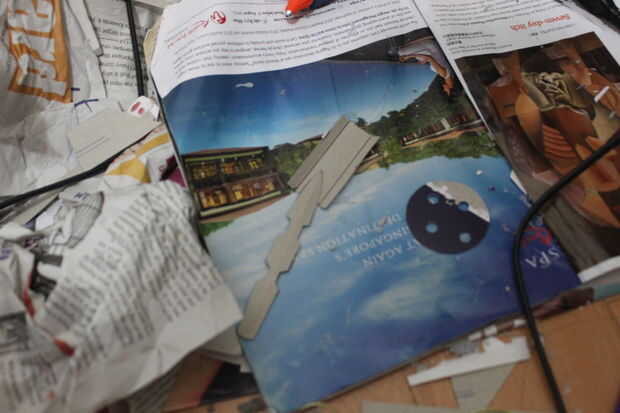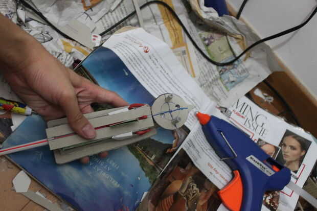 Construir alrededor de 9 capas del disco por el disco inferior es tan alto como el compartimiento de pista deslizante... (no. de capas pueden variar, según el pegamento y el papel de elección)