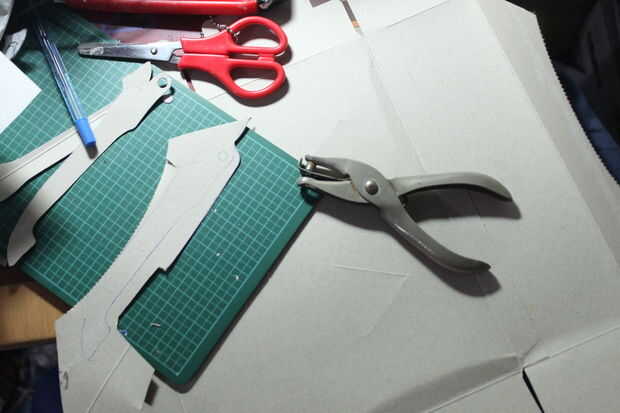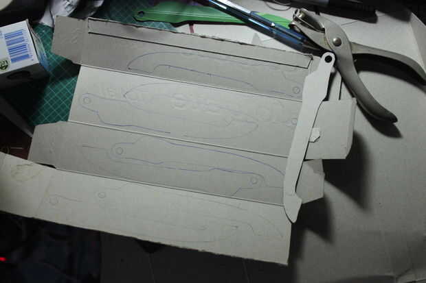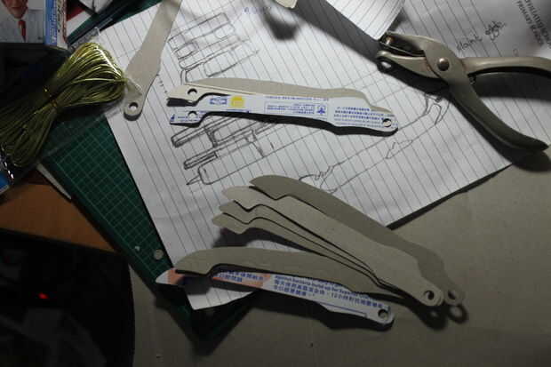 - Replicar y cortar la forma de la extremidad (favor incluir el agujero) de la extremidad del arco en tarjeta del tablero 18 veces.