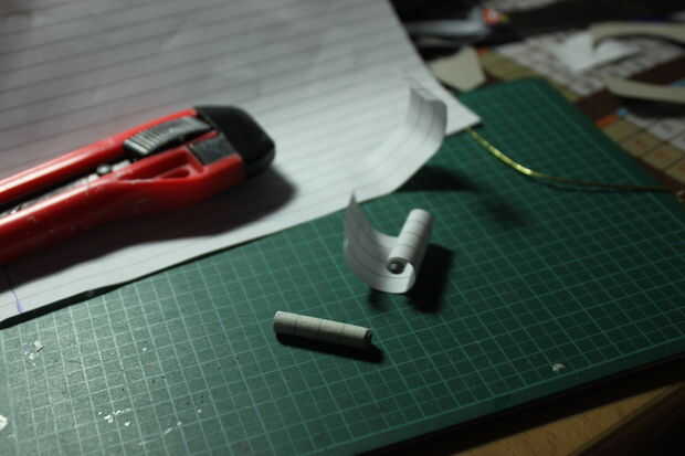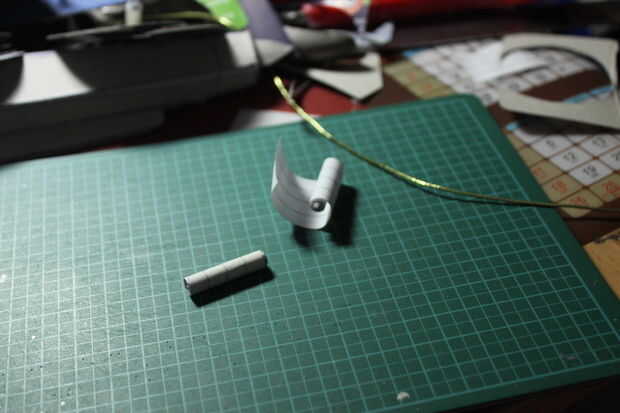 Rodar para arriba una tira larga de papel de oficina (alrededor de 2 cm de altura) hasta que su diámetro es apenas más pequeño que el agujero de la perforadora. Hacer este dos veces para obtener 2 'rollos de papel'