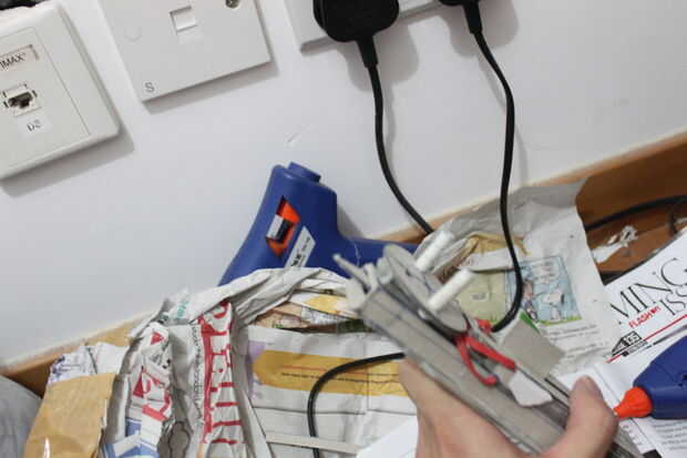 - Pegamento escolar (cola normal) es mejor que el pegamento caliente aquí, tarda más en secar pero puede transmitirse uniformemente a través de una superficie.