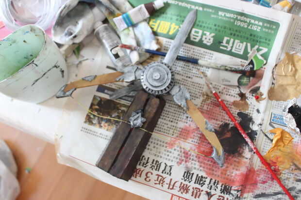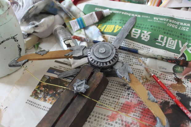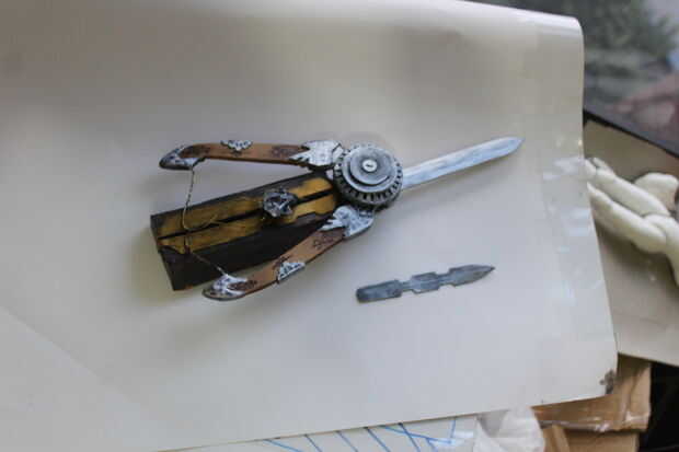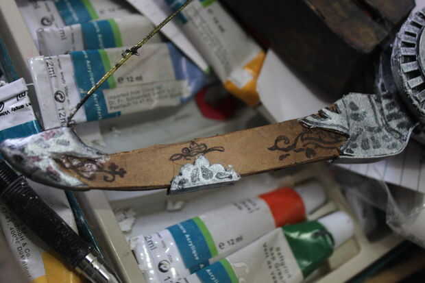Para los detalles sculptral de la madera y el metal en el diseño original, podemos engañar t pero haciendo en trabajo de pintura