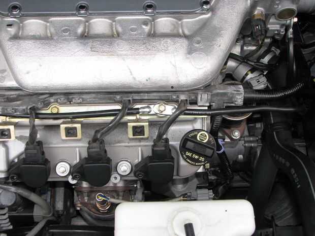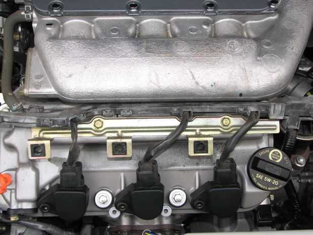 El cable de masa del motor que usted sólo conectado al alternador es doblado en un ángulo de 90 grados a la derecha y corren a lo largo de soporte, bajo los cables de la bobina. Llegar el último perno de soporte en el lado del conductor del motor. Otra vez un perno de 10mm y el siguiente cable al cuerpo del acelerador es apilada. Usted puede apretar este perno ahora - nada mucho que ajustar aquí.