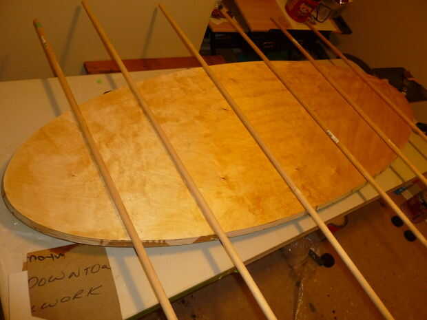 Corte y pegado de laminados en la parte inferior de la tabla para añadir estabilidad. Para evitar la deformación de la madera, debe balancear hacia fuera.