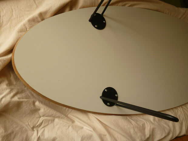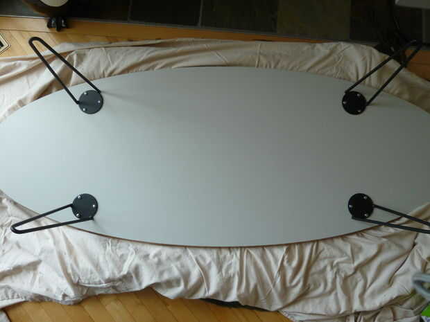 Una vez seco, puse la plantilla sobre la mesa y usa el router para obtener el borde acabado mostrado.