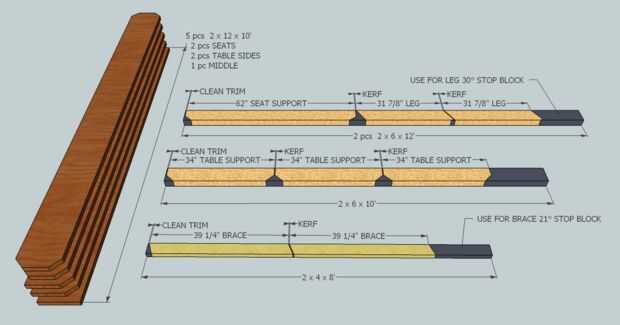 5 2 x 12 x 10' hacer 2 asientos, 2 lados de mesa y el centro de mesa.
