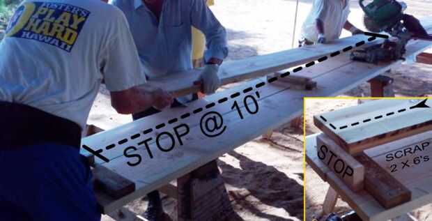 - Configurar una sierra con una 34" parada más lejos abajo de la superficie de trabajo.