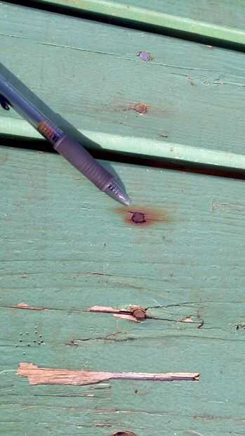 3. corrosión del clavo / clavo putrefacción agujero los clavos y obtener las tablas de asientos y mesa de agujeros de clavo son propensos a la entrada de agua, haciendo que caña de clavo a moho y agujeros a pudrirse lejos del clavo. Tanto hará falta, típicamente vista al levantar la tabla por los asientos (Junta rasga-hacia fuera). Mucho cuidado pintura + sellado de los orificios puede ayudar a prevenir esto. Pintura mantenimiento periódico + recambio puede también retrasar esto.