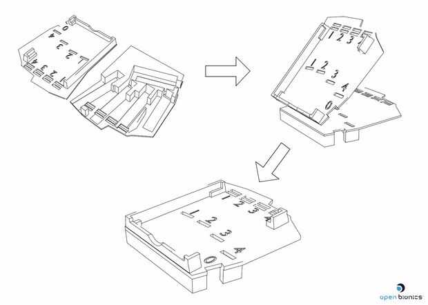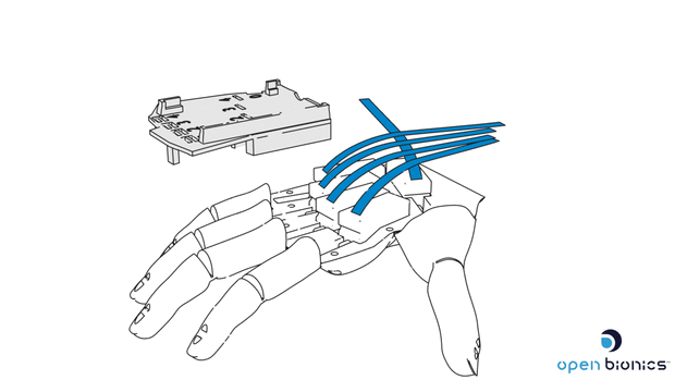 La bandeja de la PCB está diseñada para mantener los cables del motor en su lugar y permitir que la PCB para montar dentro de la mano.
