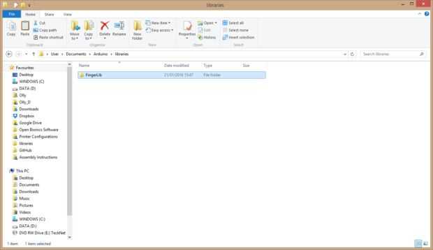 - Mover la carpeta FingerLib a la carpeta de las bibliotecas de Arduino