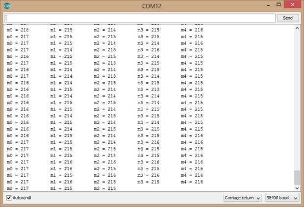 - Con el ejemplo de MotorTest cargado de la Junta de almendra, conectar a la tarjeta con el Monitor Serial