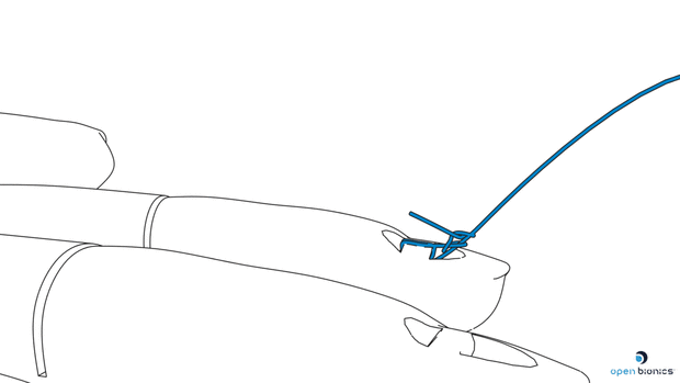 Los tendones fijar el alcance de la mano a los motores y permiten los dedos para accionar, este paso tiene algunas partes muy difíciles debido a los ángulos difíciles y espacios reducidos.
