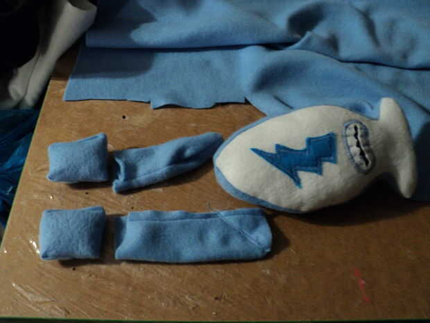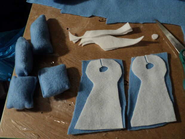 Crear los brazos cortando a la forma de aleta de garra de robot en material de dos colores.
