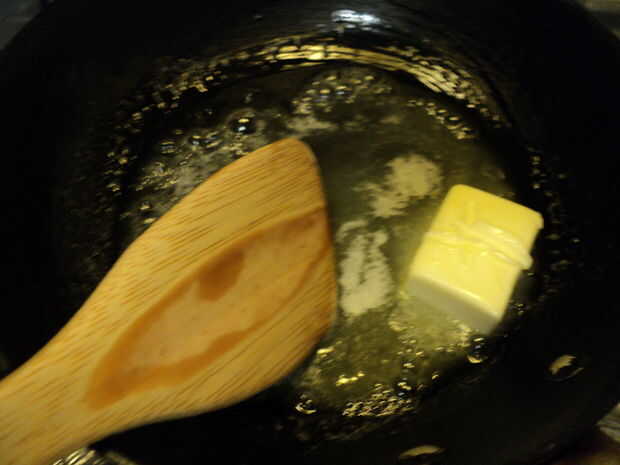 Derretir un cuarto a un medio palo de mantequilla. Este "moja" las migas de galleta para que se peguen juntos para su corteza.