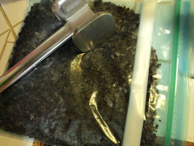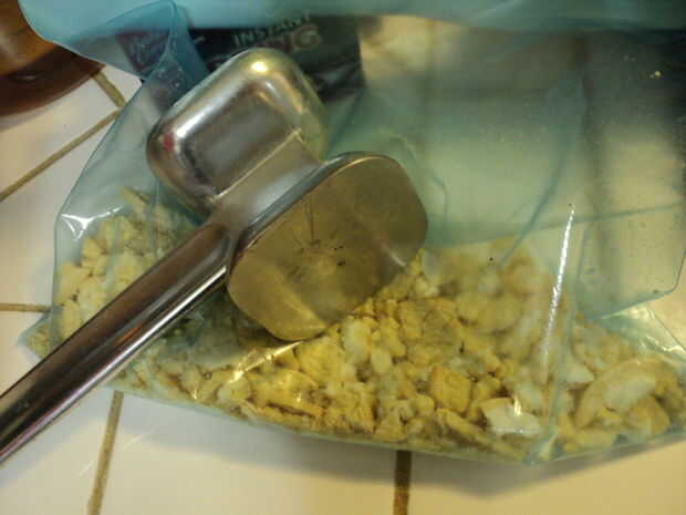 Vencer a los diablos de ellos. Usé un mazo de carne para machacar las galletas. Se pulveriza con el lado del instrumento desafilado de la herramienta. La cara fresada tendría rasgó la bolsa aparte haciendo un lío. Por cierto, mantenga una mano detrás de la puerta para aquellos visitantes que sin previo aviso que no desaparecen.