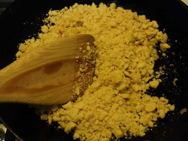 Dependiendo de cómo te guste la textura de su corteza, mantener tratamiento por las cookies a una textura arenosa. Molido más fino, mejor se formará la corteza.