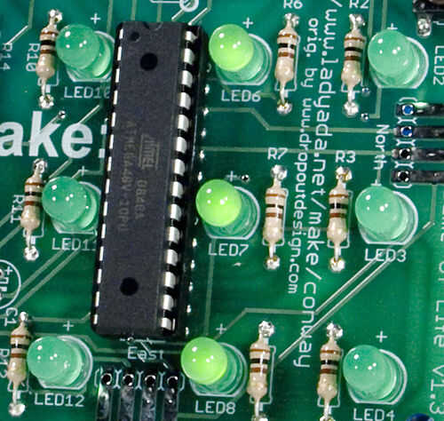 Una cosa que usted notará en las fotos anteriores es que los LEDs son más bien equilibrados con el resto de la imagen. Una de las ventajas de utilizar el método de iluminación presentado aquí es que hay un montón de iluminación disponible para iluminar el resto de los componentes, lo que les permite "igualar" el brillo de los LEDs encendidos y PCB. Hay una ventaja añadida en el ejemplo anterior porque los LEDs en el tablero de juego de la vida se difunden, que los cortes hacia abajo en su salida un poco. Dicho esto, cada LED es diferente, algunos se difunden, algunos son claros, y tienen diferentes niveles de salida. Si usted está tratando de disparar un proyecto y los LEDs son muy brillantes, hay algunas cosas que usted puede probar: