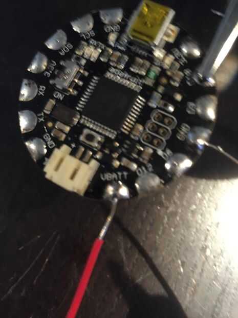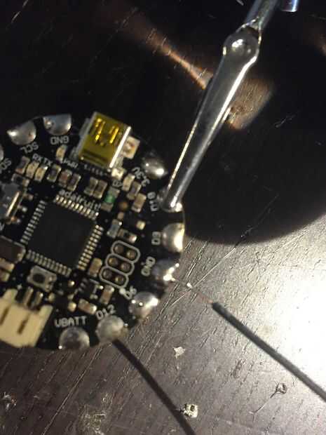 Esto es simple. Utilice un soldador y algunos cortan longitudes de cable para conectar los 2. Soldar los cables negro a GND, rojo a VBAT y amarillo a D6.