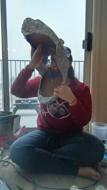 para hacer los montículos para los ojos, había arrugado encima bolas de periódico, envuelto en papel y pegadas por la parte superior.