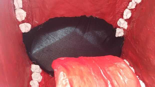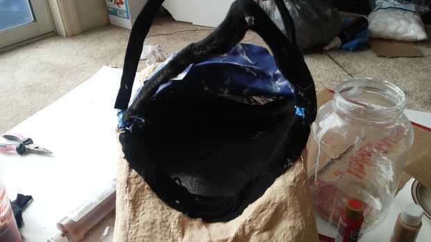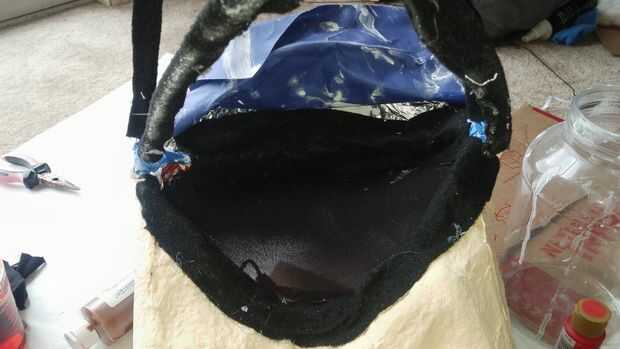 como con Adán es, cubrió el interior de la máscara y los hangares de la capa de alambre con tela para hacer la máscara más cómodos de usar.