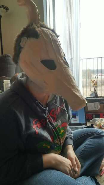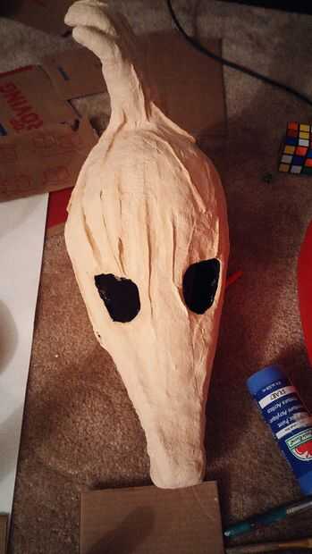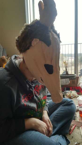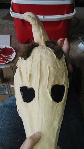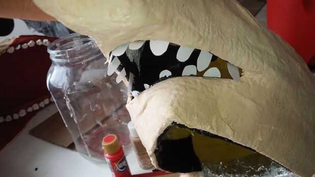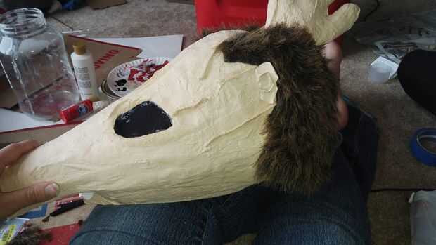 También decidió pegamento caliente algo de tela en el interior de la máscara para que sea más cómodo de llevar.