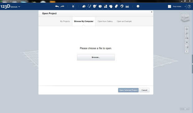 Haz clic en el logo de 123Design en la esquina izquierda.  Haga clic en el botón abrir.  Seleccione la ficha examinar mi PC y abrir el archivo descargado.