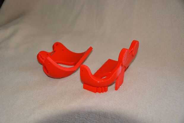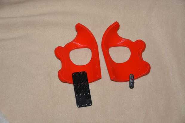 Imprimir los archivos adjuntos. Asegúrese de activar estructuras de apoyo para que las áreas. Puesto que las piezas son bastante grandes, recomiendo usar configuración de impresora 'rápido' (alturas de capa grande) y una tira de impresión climatizada para evitar problemas de deformación. Además, usé PLA-filamento en vez de ABS, porque hay menos problemas con deformaciones. Asegúrese de que usted no se quede sin filamento durante la impresión.