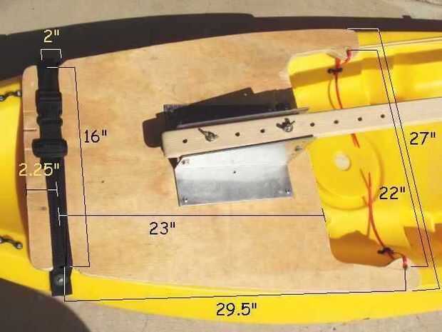 Para los dos de Malibu, las dimensiones críticas son: (1) 16 pulgadas de ancho donde la correa de la cubierta delantera se ajusta en la zona delantera de la placa de cubierta, (2) de 29 1/2 pulgadas de longitud, entre el centro de las características de la correa y el orificio donde un cintillo grande asegura las características más posterior de la placa de cubierta para el kayak, (3) 22 pulgadas entre los agujeros que lazo envuelto a la fábrica coloca ojales en el M2 y (4) 23 pulgadas máximo de la correa hasta el borde posterior de la parte principal de la placa de cubierta se asegura el área de piso entero de la cabina permanece abierto. Simplemente marca que estas dimensiones críticas en la madera o el patrón primero, luego complete el resto aproximadamente como se muestra.