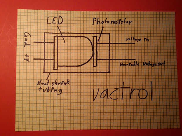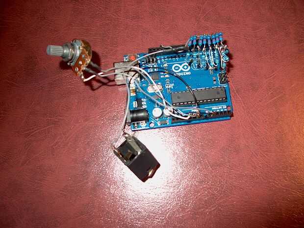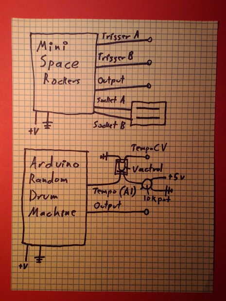 Aleatorios Arduino Drum Machine de blinkyblinky del usuario de Instructables es lo que dice, un simple, lofi drum al azar. Tiene una perilla para controlar la velocidad y un DAC simple a las muestras de salida como una señal de audio. Primero construí la unidad de la caja de un proyecto por sí mismo con una salida para conectar a un amplificador de audio. Estoy instalando en mi Lunetta como-es, excepto que en lugar de una toma de salida estoy usando un post por lo que es compatible con mi Lunetta. También estoy añadiendo un vactrol en el bote por lo que puedo controlar el tempo con voltaje externo. Mi intención aquí no es cambiar el proyecto original demasiado. Quiero incorporar en mi máquina.