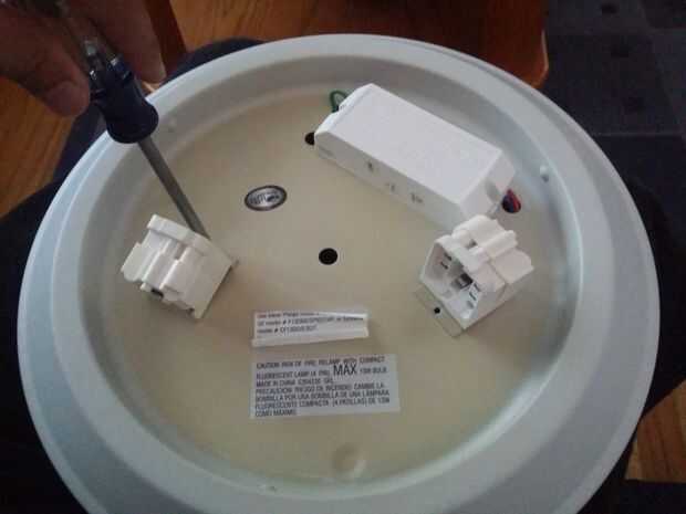En primer lugar, apague, quite la lámpara del techo y desarmar desatornillando los casquillos del Balastro y la lámpara. Asegúrese de que tenga cuidado al quitar las tuercas, utilice protección ocular en caso de ruina cae del techo o caja de conexiones y asegúrese de que está realmente apagado. He tenido algunas ocasiones donde dos circuitos residen en un determinado cuadro. Uno nunca sabe cómo un dueño anterior o constructor de la casa con cable el lugar!