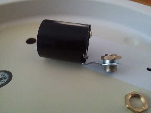 Una vez vuelto a montar, añadir la varilla más pequeña niple roscado del paquete y una tuerca de sujeción para el ensamble de la base como se muestra. Por supuesto, dependiendo de su aparato, puede que necesite utilizar un niple de longitud diferente.