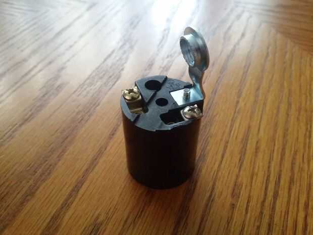 Como se muestra en la foto, tuve que hacer una pequeña modificación para la conexión de la lámpara. El soporte roscado está destinado a sostener la toma sobre la base de conexión de una lámpara. Quitar el tornillo, utiliza dos pares de alicates para doblar el soporte y luego a instalar. Usted necesita para lograr un ángulo de "la bombilla se ajusta dentro de la base y la cubierta de la lámpara". En este caso, utilicé mi Italiano cocinar método de "sí, eso es derecho" para establecer el ángulo de la curva.