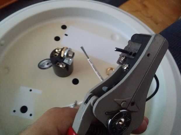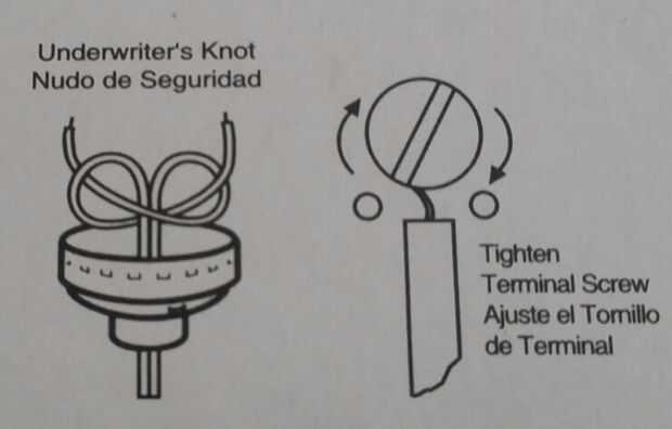 Pase los cables a través de la entrerrosca. Tenga cuidado de no rozar el aislamiento o estire demasiado en cuanto a poner tensión en los terminales. Deja un lazo de servicio pequeño en los cables cerca del zócalo. Un paso que olvidé fue agregar nudo de un suscriptor en los cables por la foto adjunta. Sin embargo, creo que en este caso que el aparato debe estar bien porque a diferencia de una lámpara de mesa, este accesorio se colocará en el techo y no sujeto a tener el cable tirado o se movió una vez instalado.