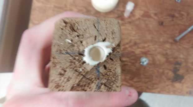 4. Poner suficiente pegamento para madera en el agujero para fijar correctamente la tuerca Tee.