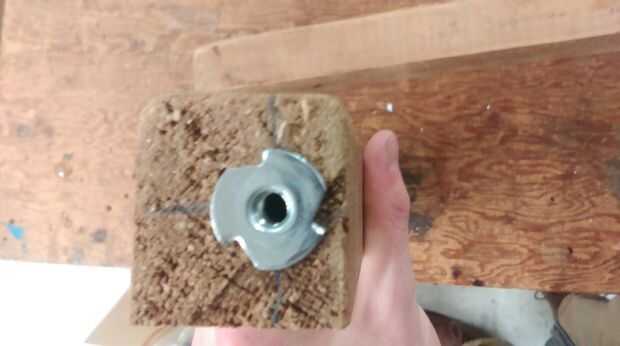 5. Coloque 1/4 "x 20 t tuerca en el agujero. Debe exigirse un martillo para hacer la cara de la tuerca t ras con el extremo de la madera.