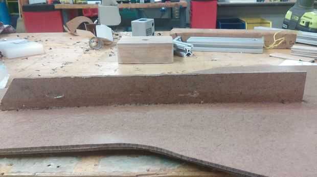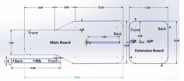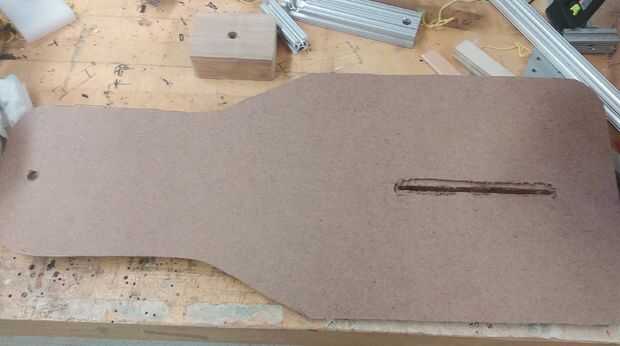 3. Opcional: En la parte inferior de las dos piezas de la placa principal, hay una ranura de 14" a partir de 2.5" de la parte delantera centrada sobre el eje longitudinal. Es mejor mantener la costilla después de pegado.