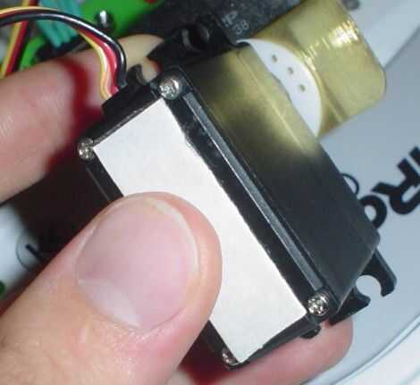 No quería perforar o hacer un montaje especial (demasiado esfuerzo innecesario), así que decidí usar extra fuerte doble cara cinta adhesiva (ver imagen). Mi única preocupación acerca de esta cinta fue que yo puedo tener dificultades quitando el servo en el futuro... (no monte un gueto, tiene realmente estas cosas).