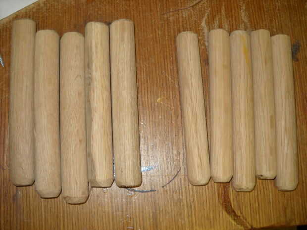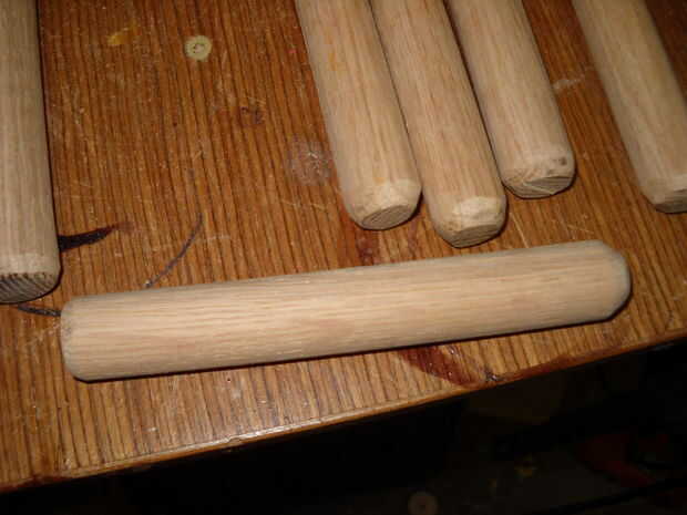 Con la lijadora, bisel uno de los extremos de cada cilindro por lo que es redondo / domo. Este fin puede de alguien mano, así que no hay esquinas o bordes afilados. Ligeramente en bisel el otro extremo lo suficiente para eliminar los bordes filosos.