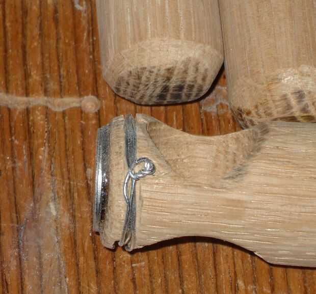 Para remediar esto, corté un pequeño canal en la parte superior con la dremel. Puse un par de bucles de alambre de acero en el canal, luego gire con pinzas o utilice la herramienta ClampTite para apretar los lazos. Esto evita que más expansión de la madera.
